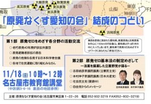 この度は、「原発なくす愛知の会」の結成、お祝い申し上げます。